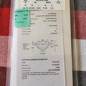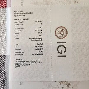 Total Carat Weight: Lab grown Round 3.54 D VS1
