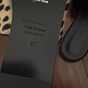 Jenni Kayne Hair Calf Black and Cream Animal Print Mules