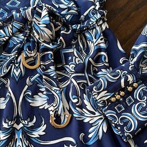 Cache Blue and White Long Sleeve Dress