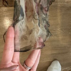 Strapless maxi dress with a floral pattern. Ideal for a fall wedding guest. Fit is TTS and has an adjustable tie back with a zipper & hook closure below. Worn once for a wedding. There is a snag / imperfection on the bottom hem as pictured in the photos, which is not noticeable when worn. Otherwise, great condition.