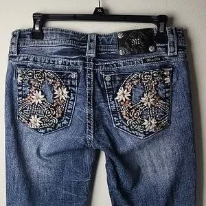 Miss Me Jeans Signature Skinny Floral Stitching Size 28