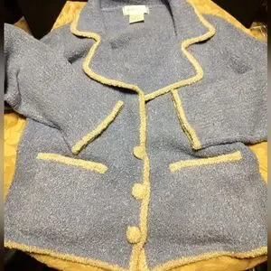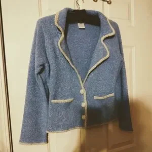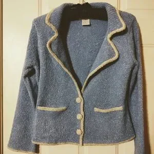 🔹🪻🔹Divine Vtg French Blue Periwinkle & Cream Plush Boucle Sweater Blazer - M