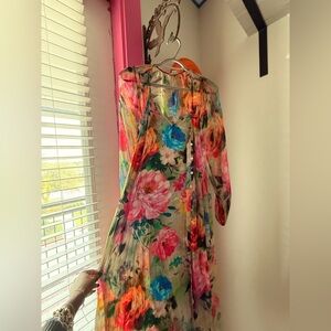 Literally the most perfect sheer dress with multicolor floral print. You can wear it casual just with brown sandals or dress it up with a nice heel!