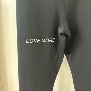 Screen-printed graphic above knee “Love More”