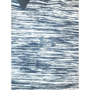 Under Armour Iso-Chill polo shirt, designed to keep you cool and comfortable during any activity. This short-sleeve polo features a black collar with a two-button placket and a subtle Under Armour logo on the chest. The unique horizontal stripe pattern in black and white adds a modern athletic touch. Crafted for performance, this polo is perfect for golf, workouts, or casual wear.