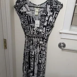 Stylish and versatile, this black and white patterned dress is perfect for any occasion. Its unique design adds a touch of elegance to your wardrobe.