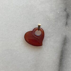 Vintage Solid 14K Yellow Gold Puffy Carnelian Floating Heart Style Charm Pendant