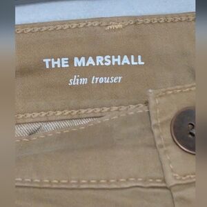 Marshall is a modern slim trouser pant for men featuring slash front pockets, and welt back pockets. This pant is cut in a comfortable mid-rise waist and a trouser-like construction that fits slim from hip to the knee before slightly tapering at the leg opening.