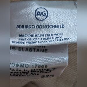 AG Adriano Goldschmied Men's The Marshall Slim Trouser Khaki Chinos Size 32R NWT