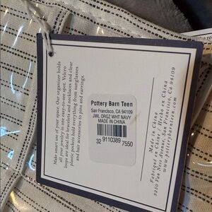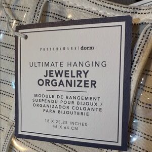Elegant cream organizer with black stripes. Features clear pockets for easy storage.