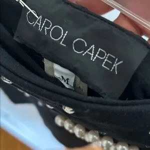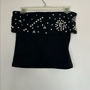 Vintage Black Strapless Top with Pearl and Rhinestone Embellishments Size Medium