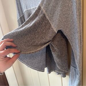 Chic and relaxed light gray blouse. Features a flowy silhouette and soft fabric. Ideal for casual outings. Has slits up the sides. In perfect condition.