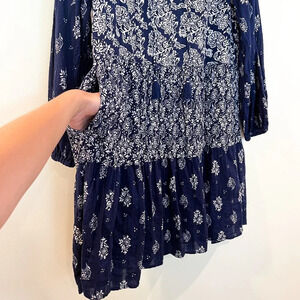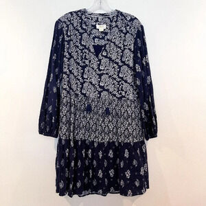 Maeve Anthropologie Navy Paisley Bohemian Floral Peasant Tunic Mini Dress XS