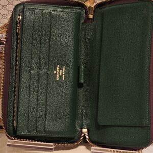 Elegant Monogram Canvas Green Bellboy Organizer zip-around Wallet comes with Box and dustbag, with gold-tone hardware and graphic design. This luxurious design and classic chic organizer wallet features gold accents with multiple card slots, bilfold compartment, and zipper coin slot with 2 miscellaneous components for organizing your daily adventures and activities also a slot for passport holder.