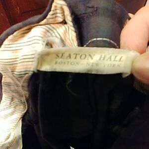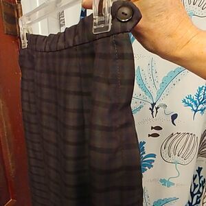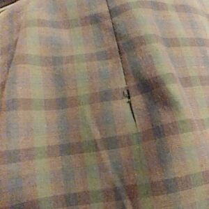 Preppy cotton pencil skirt by Seaton Hall. Very subtle plaid is a deep eggplant purple, midnight blue and forest green. Zips and buttons up left side. Back pleat. Lightweight unlined cotton. Measurements: 13" waist, 18" hips, 26" waist to hem. Good vintage condition with no stains. Back left rear darts might need reinforcement.