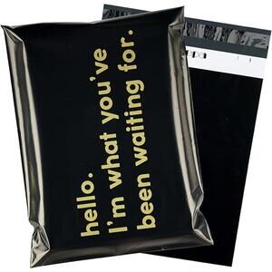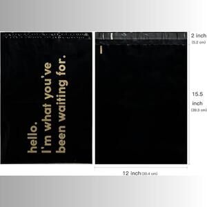 Pick up 10 adorable brand new black polymailers for your wrapping, shipping, and storage needs! All 10 are 14.5"x19", black with gold text: "hello. I'm what you've been waiting for."