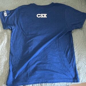 Bright blue tee with a fun train graphic. Soft and comfortable for everyday wear. Ideal for Family Day celebrations.