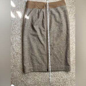 Chic brown pencil skirt by Stella McCartney. Gorgeous features like asymmetrical waistband with built-in stays, full lining and an exquisite exposed zipper in the back that zips from both the top or bottom.