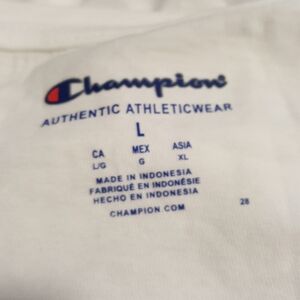 New with tags Women's Champion t-shirt white with blue and red logo on the front