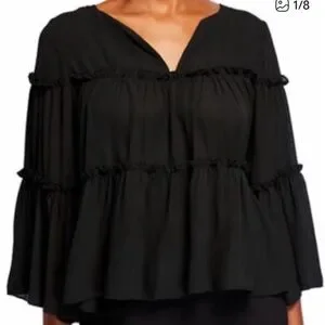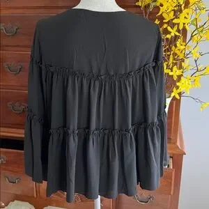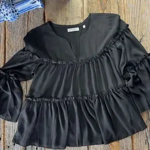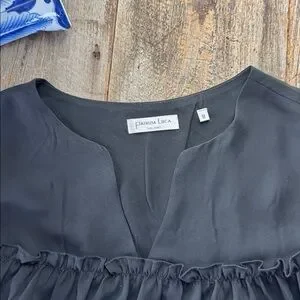 Patrizia Luca Milano Black Ruffled Blouse Size Medium