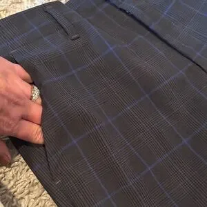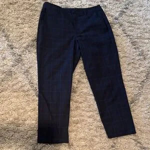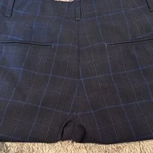Elevate your style with these navy checkered pants. Perfect for any occasion, these pants offer a sleek and modern look. Rise 10” inseam 24” waist 16”