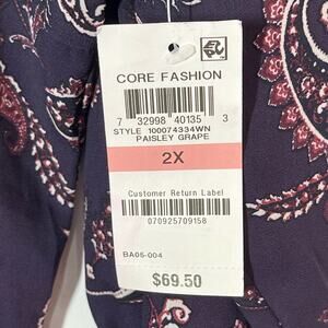 NEW Style & Co Blouse Women's Plus Size 2X Purple Grape Paisley Core Boho
