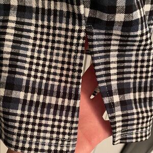 Elevate your wardrobe with this timeless blue, black and white plaid skirt. Perfect for any occasion, this skirt offers a chic and versatile style.