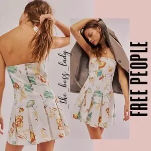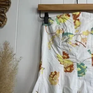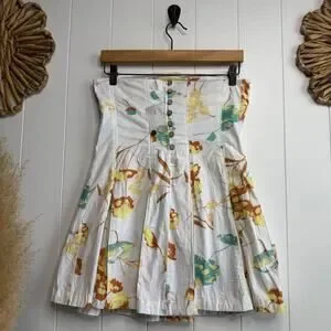 Free People floral mini dress strapless pleated spring summer cotton Medium