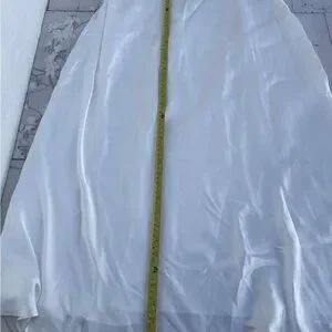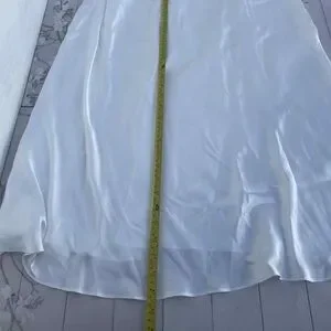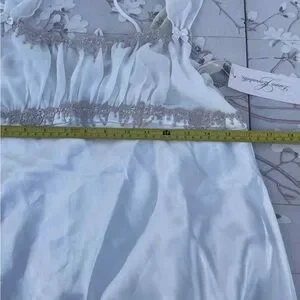 Chic white dress with silver embellishments. Sleeveless design. Perfect for weddings.