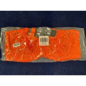Stylish lace bra with intricate design. Bright orange color adds flair. Comfortable and supportive. Absolutely gorgeous color. I have exactly the matching panties (hipster) in the matching color, please ask if you’re interested. Torrid is great at accommodating larger cup sizes.