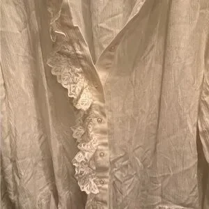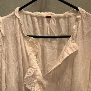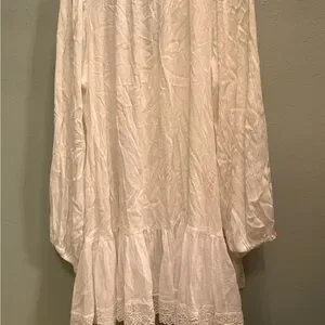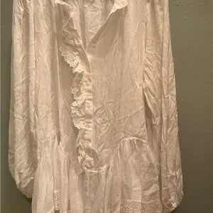 Elegant white tunic with ruffled details. Lightweight and stylish. Perfect for layering. NWOT, never worn. Oversized so will fit up to maybe a large.
