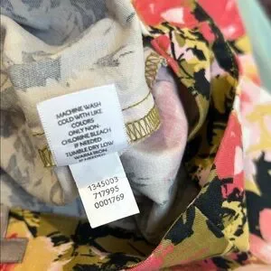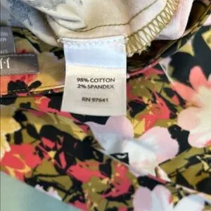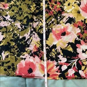 Chic floral pencil skirt by J. Jill. Features pink, black, and green floral design. Side zipper.