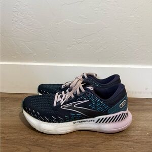 Glycerin GTS Brooks athletic shoes for women. Navy upper with lavender laces. Ideal for running and workouts. Gently used.
