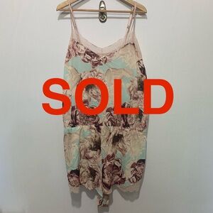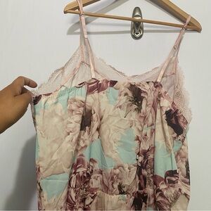 Cacique Floral Lace Romper Sleepwear Plus Size 26/28 | Pink Aqua Peony Print