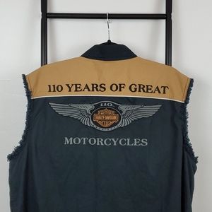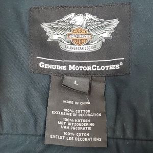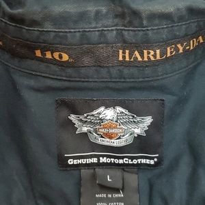 Harley Davidson buttons down black orange shirt sleeve distressed men size L