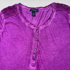 Lauren Ralph Lauren Henley Blouse Denim Look Crochet Womens Large Purple Cotton