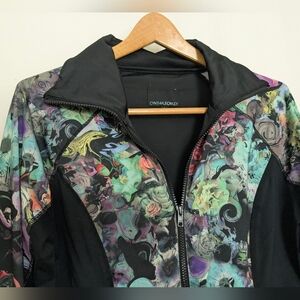Cynthia Rowley Floral Black Activewear Full Zip Jacket Large
