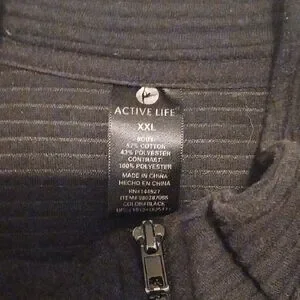 Comfortable charcoal zip-up jacket. Features durable zipper and soft fabric blend.