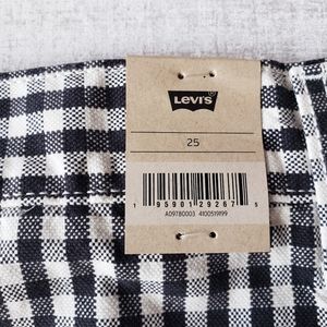 🆕️Levi's Plaid Checker Print Black Gray White Cotton A-Line Skirt SZ 25