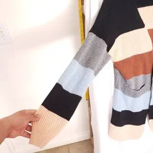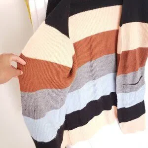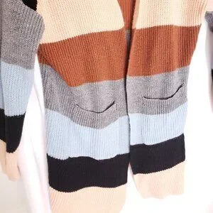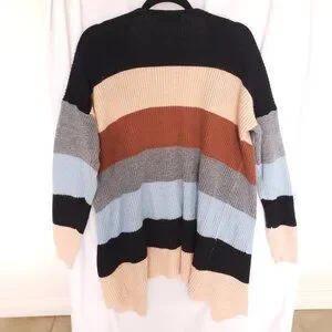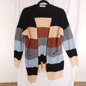 Ecowish Multicolor Colorblock Striped Long Knitted Cardigan Sweater Size L