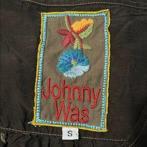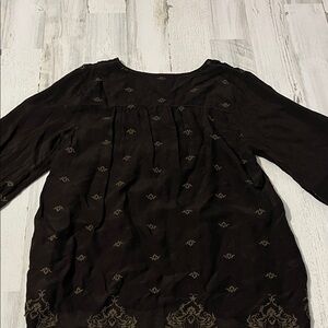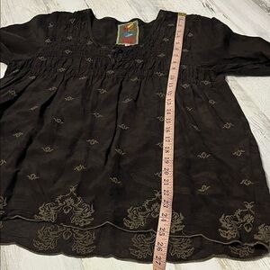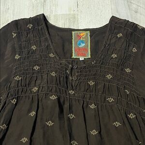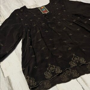 Johnny Was Chocolate Brown Blouse with Embroidery Size Small