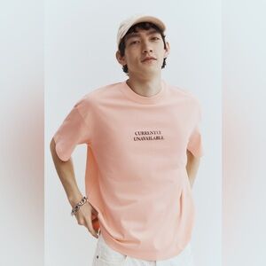 H&M XS Loose Fit Printed Currently Unavailable Peach Short Sleeve Tee