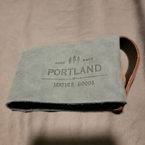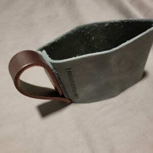 Portland Leather Goods leather mug holder. Gray body with brown handle. Perfect for daily use.
