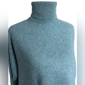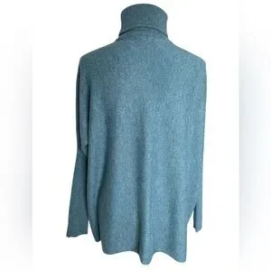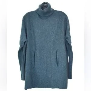 Garnet Hill Sweater Blue Wool Cashmere Oversized Turtleneck Pockets Casual MD