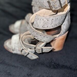 Stylish silver sandals with striking stud details. Perfect for a bold look.