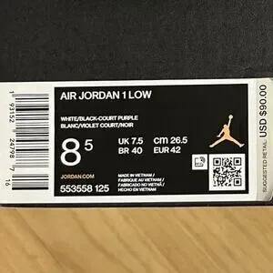 Size 8.5 - Air Jordan 1 Low Court Purple OG Men's 553558-125 RARE
