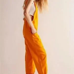 Yellow oversized overalls with a stylish design. Perfect for casual wear.