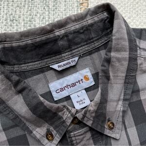 Carhartt Grey Plaid 100% Cotton Relaxed Fit Button Down Shirt Men’s Size Large