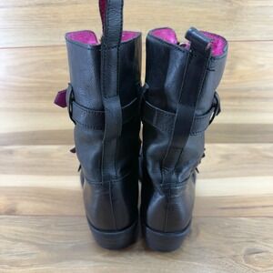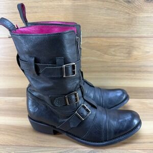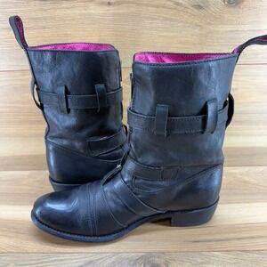 Juicy Couture Vintage Y2K Black Leather Boots Womens 8 Buckle Front zipper