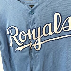 Light blue jersey with Royals script. Comfortable and stylish for young fans.